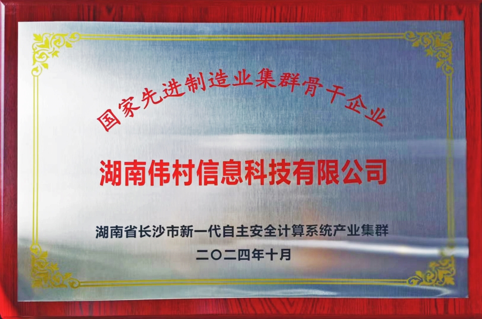 伟村科技公司荣获“国家先进制造业集群骨干企业“称号