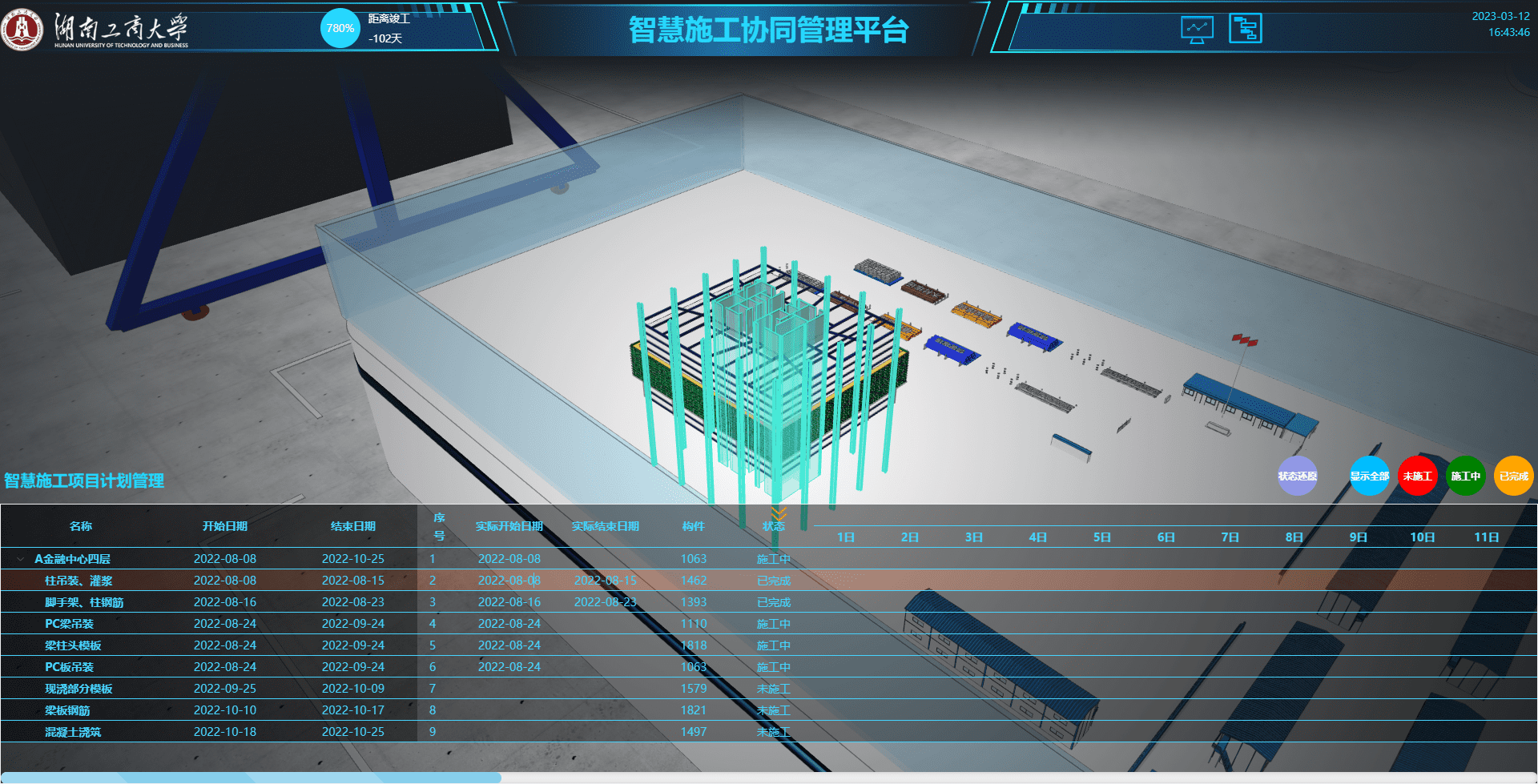 通过对三维模型与计划或实际进度关联,将项目计划与施工预期成果通过三维方式进行关联展示。